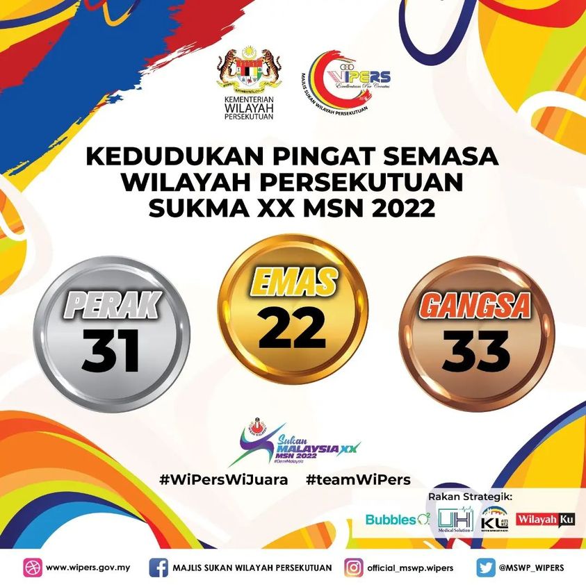 Kedudukan Pingat Semasa Kontinjen Wilayah Persekutuan pada 20 September 2022.